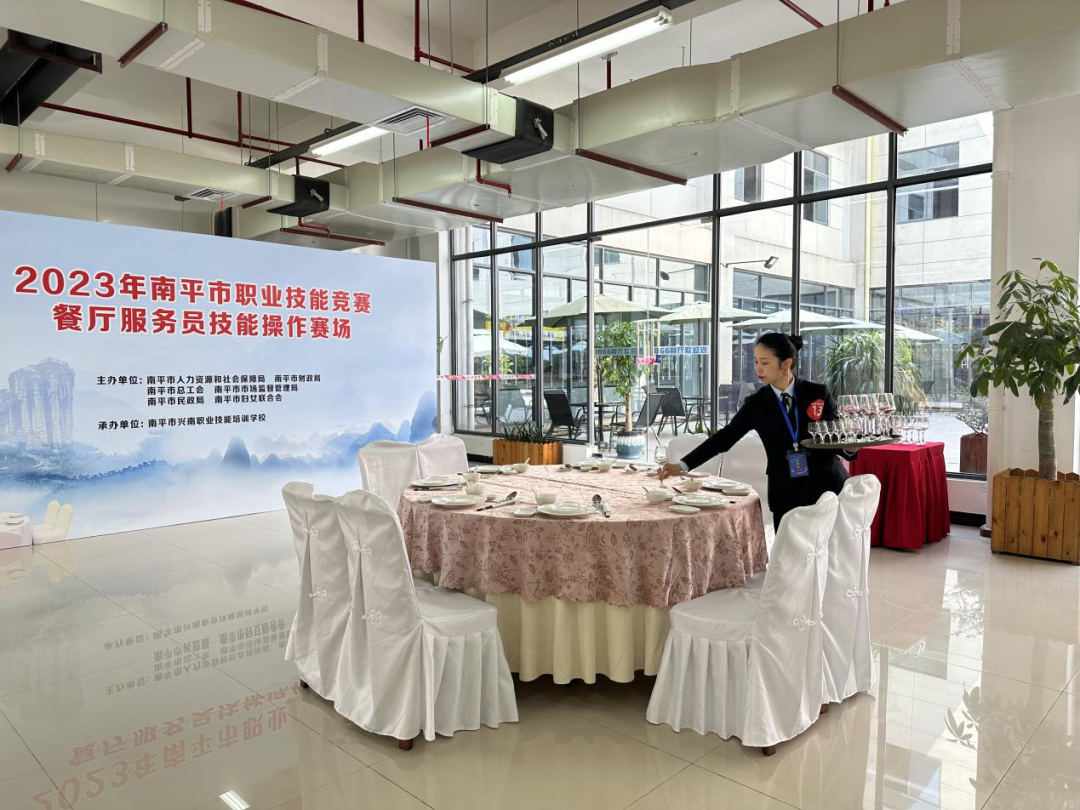 3月31日-4月2日,2023年南平市職業(yè)技能競賽——餐廳服務(wù)員技能大賽在潭順利舉辦,此次比賽由南平市人社局、市財(cái)政局、市總工會、市市場監(jiān)督管理局、市民政局、市婦聯(lián)聯(lián)合舉辦,由南平市興南職業(yè)技能培訓(xùn)學(xué)校全程承辦,近20名選手同臺競技。